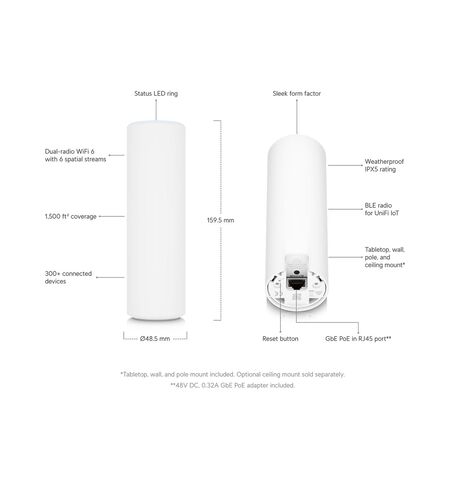 Το Access Point WiFi 6 Mesh (U6 Mesh) είναι ένα υψηλής απόδοσης σημείο πρόσβασης τεσσάρων ροών WiFi 6, που προσφέρει κορυφαία