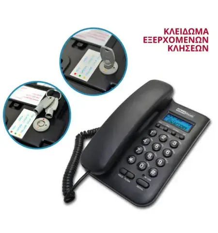 Σταθερό τηλέφωνο MAXCOM KXT100 με οθόνη και ασφάλεια κλειδώματος πληκτρολογίου μαύρο