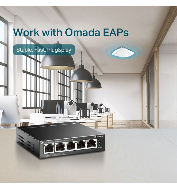 Ο TL-SG1005P είναι ένας Gigabit switch με 4 PoE+ θύρες και συνολικό PoE προϋπολογισμό 65W, ιδανικός για εφαρμογές όπως