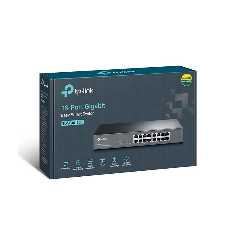 The TL-SG1016DE 16-Port Gigabit Easy Smart switch is an ideal upgrade from an unmanaged switch, designed for Small and Medium Business networks that require simple network management. Network administrators can effectively monitor traffic via Port Mirroring, Loop Prevention and Cable Diagnostics features. To optimize traffic on your business network, TL-SG1016DE offers Port Priority/802.1P Priority and DSCP QoS1 to keep latency-sensitive traffic moving smoothly and jitter-free. Additionally, port-based, tag-based and MTU VLAN can improve security and meet more network segmentation requirements. Moreover, with its innovative energy-efficient technology, the TL-SG1016DE can save power consumption, making it an eco-friendly solution for your business network.