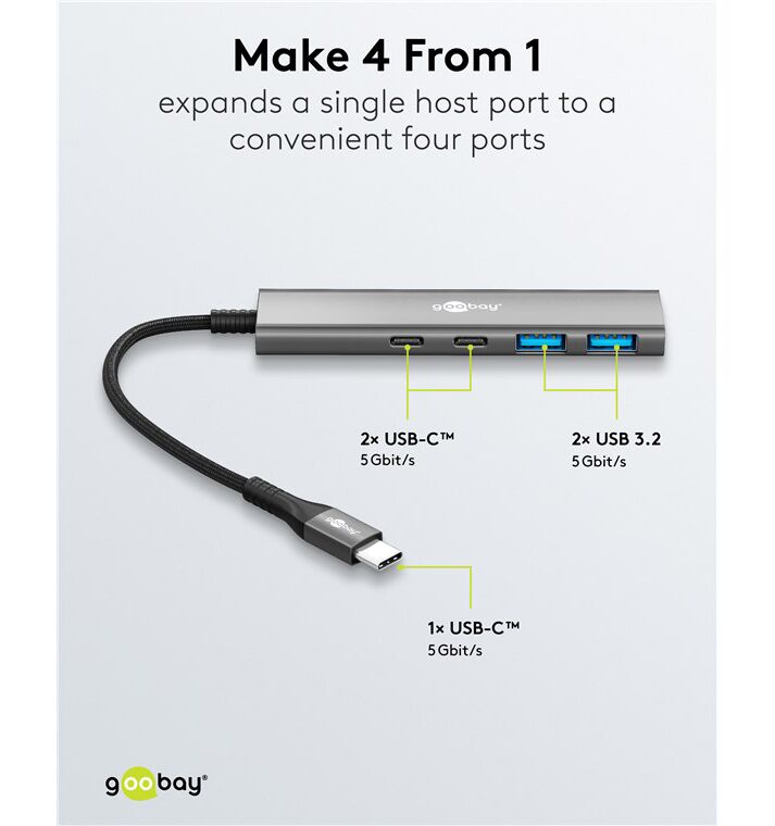 Αυτό το hub της Goobay μπορεί να συνδεθεί με το laptop ή το desktop σας μέσω θύρας USB-C και να επεκτείνει τις θύρες του με 2x USB και