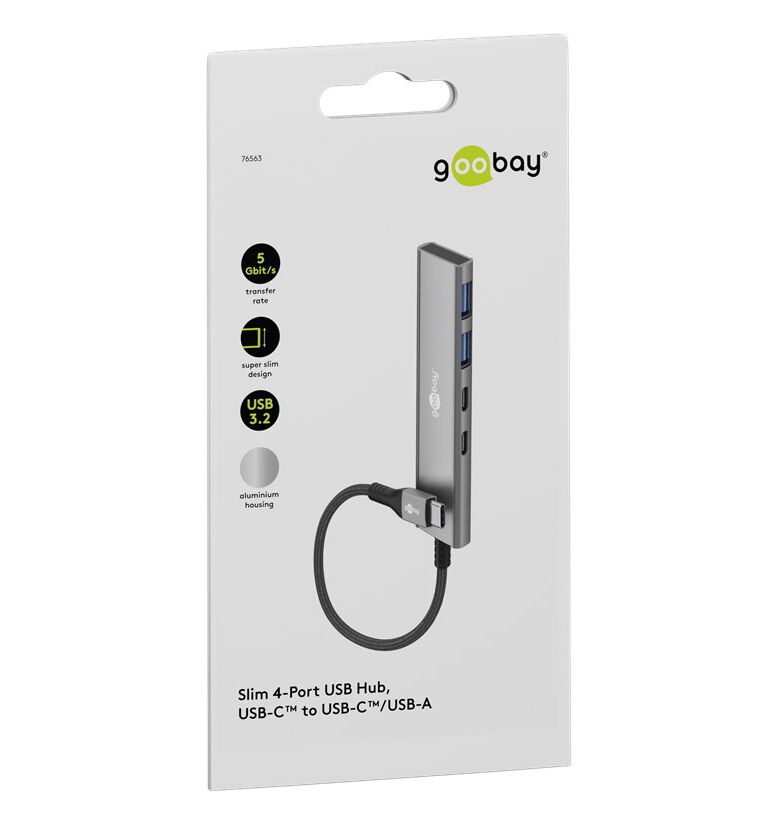 USB hub GOOBAY 76563 4x θυρών USB 3.2 5GBPS με USB-C σύνδεση γκρι